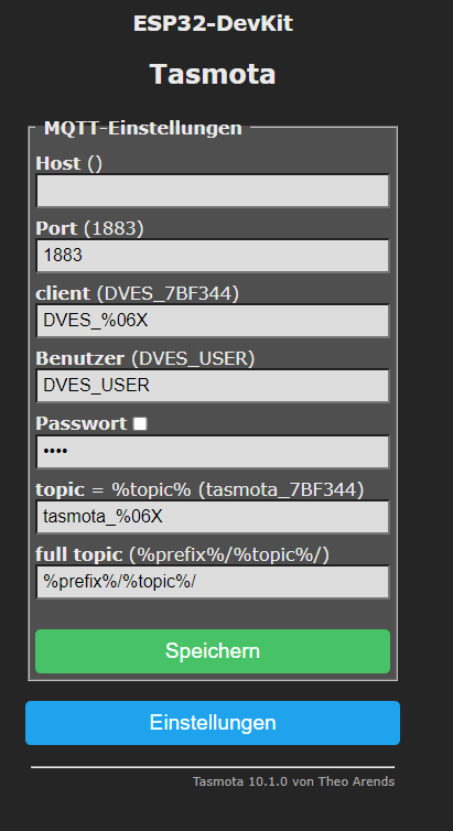 For shelf-bought Tasmota devices or the custom ESP after the previous steps: